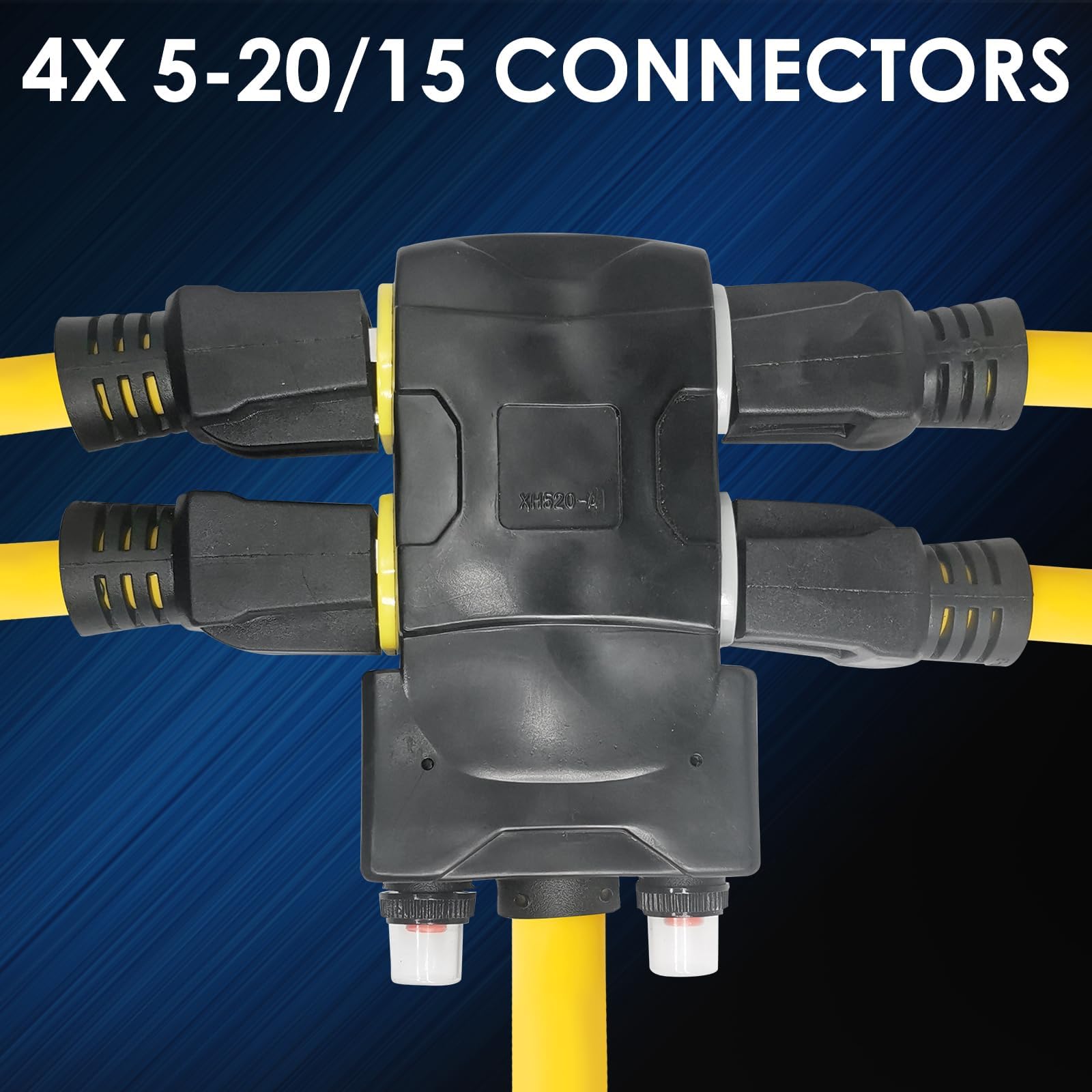 - 🏆[Superior Quality Material] STW Jacket 4C all-copper wires in UL 62 standard, Molded plug-in UL 817 standards, Heavy-duty flame retardant,4X 5-15/20R female receptacle with two 20Amp breakers.